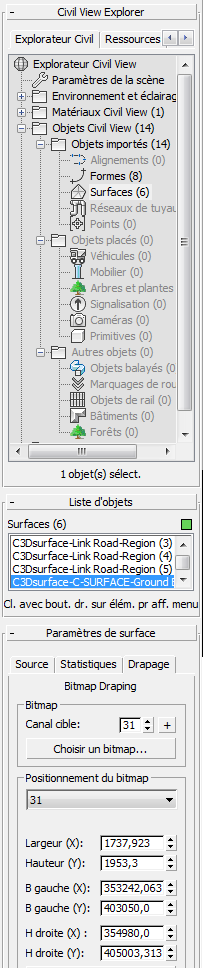 Explorateur Civil View. 3ds Max ouvre l'Explorateur Civil View, qui est un grand panneau vous permettant d'accéder à la plupart des fonctionnalités de Civil View.