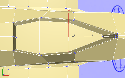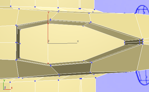 (Anneau). 3ds Max sélectionne toutes les arêtes verticales dans un anneau autour de l'intérieur du cockpit.