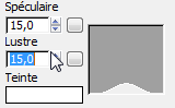- Dans le panneau déroulant Paramètres de matériau, remplacez la valeur des paramètres Spéculaire et Lustre par 15,0.