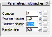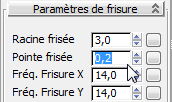 - Dans le panneau déroulant Paramètres de frisure, remplacez la valeur du paramètre Racine frisée par 3,0 et celle de Pointe frisée par 2,0.