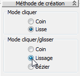 - Dans le panneau déroulant Méthode de création, choisissez la valeur Lissage dans les zones Mode cliquer et Mode cliquer/glisser.