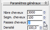 - Dans le panneau déroulant Paramètres généraux, remplacez la valeur de Segm. cheveux par 100 et celle de Passes cheveux par 2.