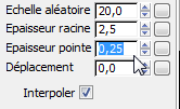- Dans le panneau déroulant Paramètres généraux, remplacez la valeur du paramètre Epaisseur racine par 2,5 et celle du paramètre Epaisseur pointe par 0,25.