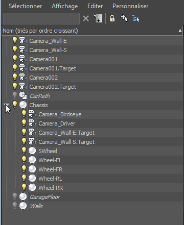 - Dans la liste Jeux de sélections de la barre d'outils principale, choisissez Garage_All.
