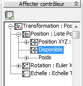 groupe de fonctions Mouvement et développez le panneau déroulant Affecter contrôleur. La liste des contrôleurs d'animation par défaut s'affiche en tant que pistes au format Explorer.