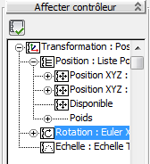 - Dans la liste de pistes du panneau déroulant Affecter contrôleur, développez la piste Rotation: Liste en cliquant sur l'icône +.