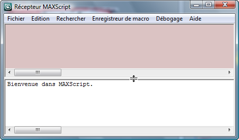 3ds Max ouvre la boîte de dialogue Récepteur MAXScript.