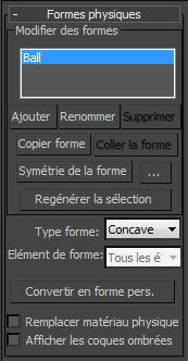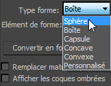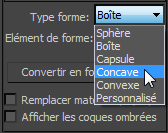 panneau déroulant Formes physiques, ouvrez la liste déroulante Type de forme et choisissez Concave.