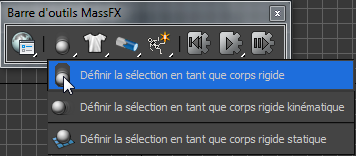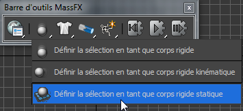 groupe de fonctions Modifier. MassFX définit des objets en appliquant un modificateur, Corps rigide MassFX, aux objets que vous sélectionnez.