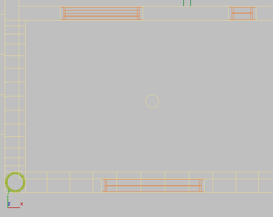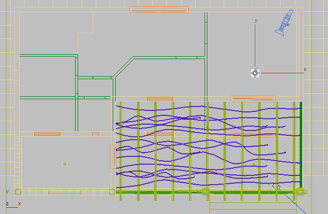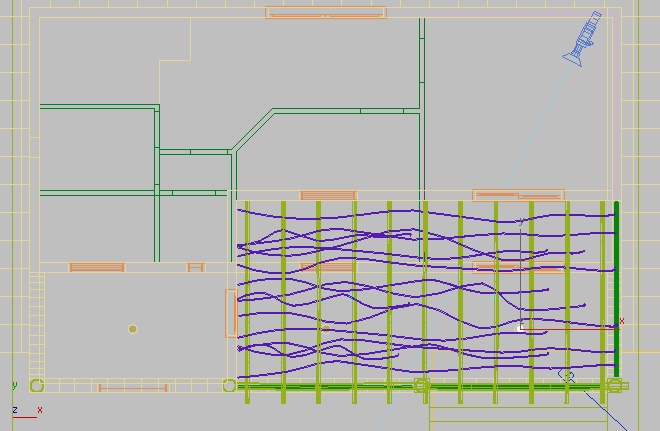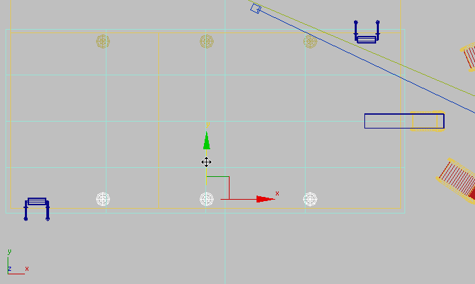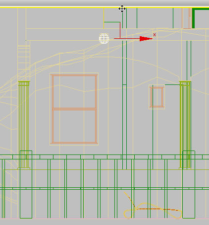 3ds Max ajoute les deux autres lumières du porche. Le troisième éclairage a le même espacement que celui que vous avez choisi pour le deuxième, de façon à être aligné sur la douille de droite.
