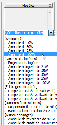 groupe de fonctions Modifier. Dans le panneau déroulant Modèles, ouvrez la liste déroulante et choisissez Ampoule 100 W.