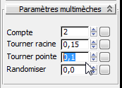 - Dans le panneau déroulant Paramètres de frisure, attribuez la valeur 15,0 au paramètre Racine frisée.