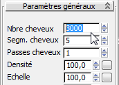 - Dans le panneau déroulant Paramètres généraux, remplacez la valeur de Nbre cheveux par 3000.