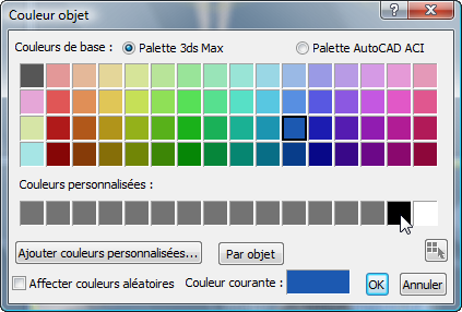 - Dans la boîte de dialogue Couleur objet, cliquez sur l'échantillon de couleur noire, puis sur OK.
