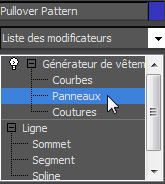- Dans la pile de modificateurs, cliquez sur le niveau sous-objet Coutures du modificateur Fabricant de vêtement pour le mettre en surbrillance.