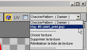 barre d'outils supérieure, ouvrez la liste déroulante de textures et choisissez Map # 0 (skirt_print.jpg). (Le numéro de map peut varier.)