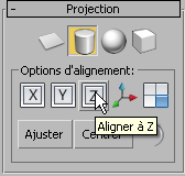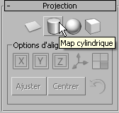 3ds Max définit une projection cylindrique pour la jupe, mais l'orientation n'est pas correcte.