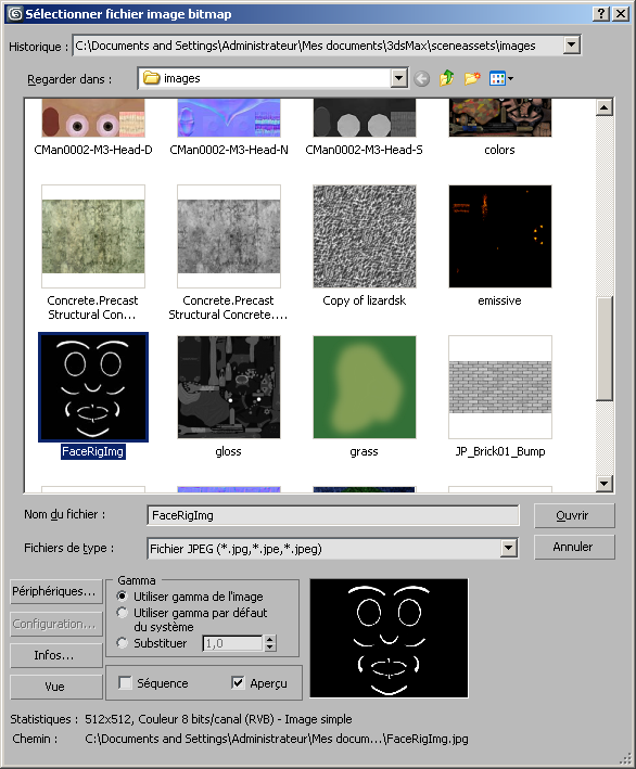 3ds Max ouvre la boîte de dialogue Sélectionner fichier image bitmap.