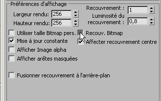 zone Préférences d'affichage, si Recouv. Bitmap est inactif, cliquez pour l'activer. Si l'option Utiliser la taille de bitmap perso est activée, cliquez pour la désactiver.