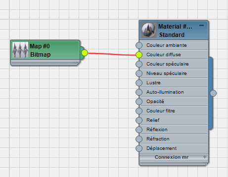 3ds Max ajoute un noeud Bitmap au composant Couleur diffuse du matériau.