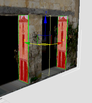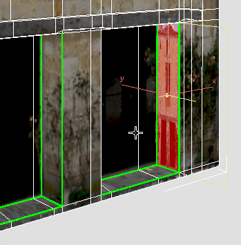Les embrasures sont à présent correctement alignées avec la texture fac1.jpg . Toutefois, elles affichent la façade tout entière, ce qui n'est pas l'effet voulu.