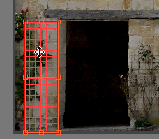 Les seuils sont un peu plus délicats à corriger, car la photo ne fournit aucune information sur cette partie de l'édifice. Pour compenser, nous utilisons la texture du linteau. Bien que le linteau soit en bois, il peut passer pour de la pierre une fois mis à l'échelle.