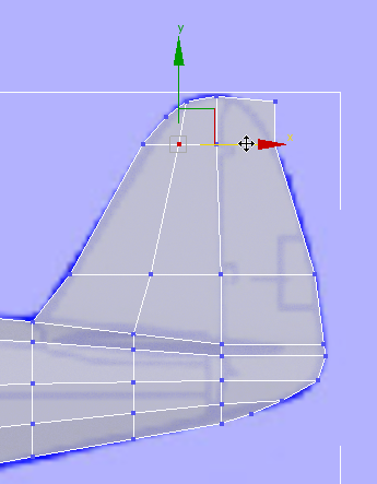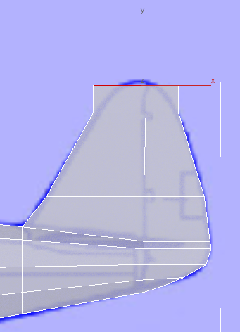 Extrudez les faces situées au-dessus de la queue jusqu'en haut de l'articulation supérieure de la gouverne de direction.