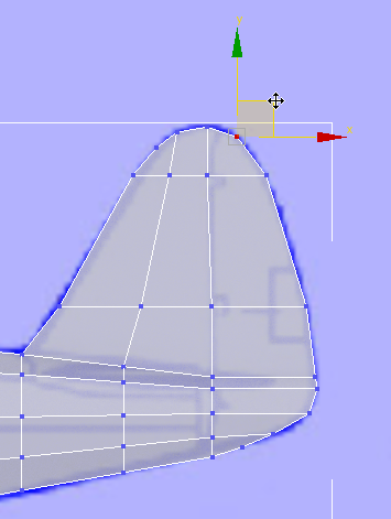 Extrudez ces faces vers le haut jusqu'à la première articulation de la gouverne de direction.