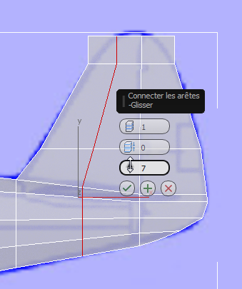 - Utilisez le troisième contrôle, Glisser pour positionner les nouvelles arêtes à peu près au milieu de la partie avant fixe de la queue.