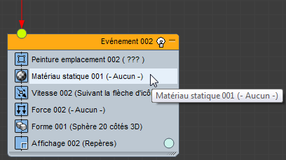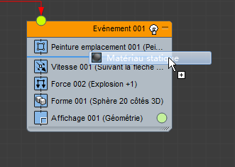 - Faites glisser le curseur depuis le dépôt pour ajouter un opérateur Matériau statique vers Evénement 02.