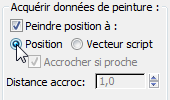 - Dans le panneau déroulant Peinture emplacement, cliquez sur le bouton de l'assistant Peinture particule (initialement nommé "Aucun").