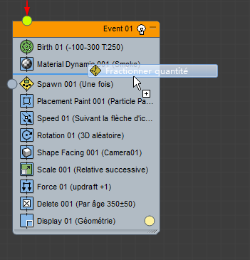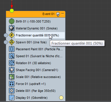 Evénement 002 peut à présent utiliser les particules qui lui sont envoyées par Fractionner quantité.