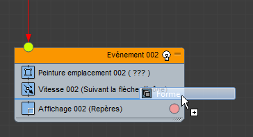 - Faites glisser un opérateur Forme du dépôt et déposez-le sur Evénement 002.