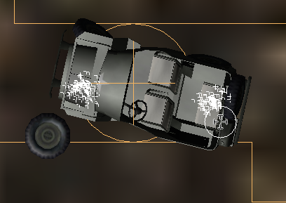 Vous allez utiliser un sous-ensemble de particules pour simuler non plus de la fumée, mais des braises projetées depuis la jeep.