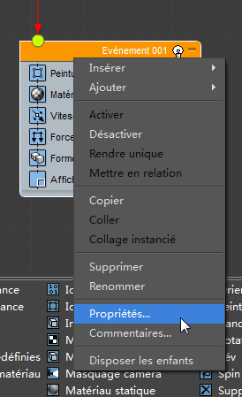 - Dans la vue particule, cliquez sur la barre de titre de Evénement 02 pour sélectionner entièrement l'événement.