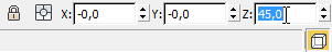 - Dans l'affichage des coordonnées situé sous la fenêtre Perspective, cliquez dans le champ de saisie Z et entrez 45. Appuyez sur la touche Entrée pour confirmer la valeur saisie.