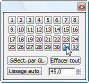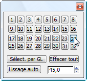 3ds Max ouvre une boîte de dialogue Sélectionner par groupes de lissage. Seuls les groupes de lissage que vous avez attribués jusqu'à présent apparaissent sous forme de boutons.