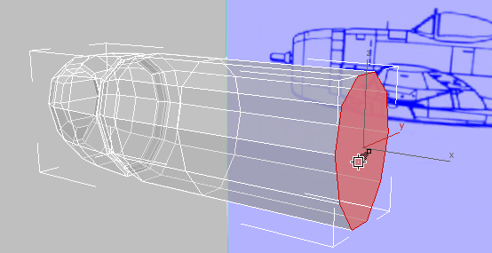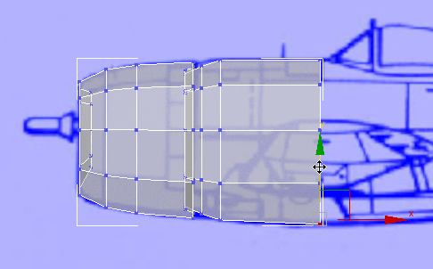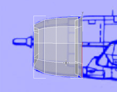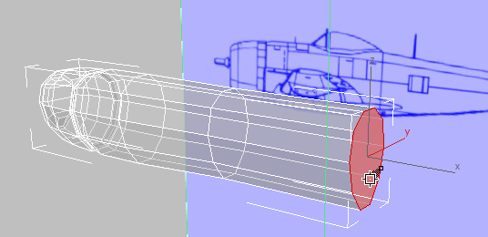 (Extruder). Dans la fenêtre Perspective, mais en observant la fenêtre Face, extrudez le fuselage jusqu'à la jointure située à l'arrière du cockpit.