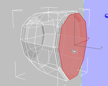 (Biseau). Dans la fenêtre Perspective, faites glisser le curseur vers le haut cette fois-ci pour extruder le polygone vers l'arrière de l'avion. Pendant cette opération, observez la fenêtre Face et extrudez le polygone juste au-delà de la surface du capot.