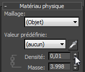 , accédez au panneau déroulant Matériau physique et ajustez la valeur de densité. La méthode la plus simple consiste à cliquer avec le bouton droit de la souris sur la double flèche.