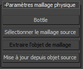 pour supprimer le maillage source. Sélectionnez de nouveau l'objet Bouteille. Le maillage source n'est plus nécessaire, mais vous pouvez facilement le générer de nouveau à partir de la forme physique à l'aide de la fonction Extraire l'objet de maillage du panneau déroulant Paramètres de maillage physique.