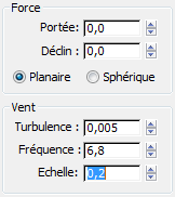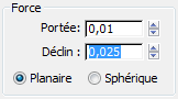 zone Force, attribuez la valeur 0,01 au paramètre Portée et la valeur 0,025 au paramètre Déclin.