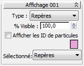 Pour les systèmes de particules étendus, le fait d'affecter au paramètre % Fenêtre une valeur inférieure à 100,0 peut améliorer les performances de 3ds Max, mais l'affichage de 100 % des particules offre un meilleur aperçu du résultat des modifications.