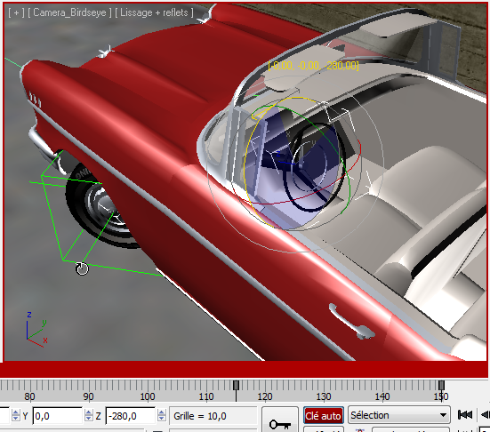 L'effet de la roue avant droite est visible dans la fenêtre Dessus.