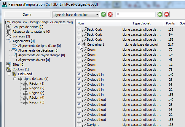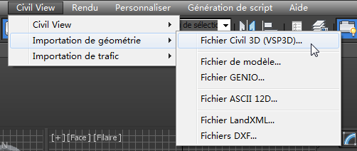 3ds Max ouvre le panneau d'importation Civil 3D.