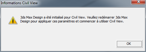 Une boîte de dialogue vous avertit que vous devez redémarrer 3ds Max pour que les modifications prennent effet.