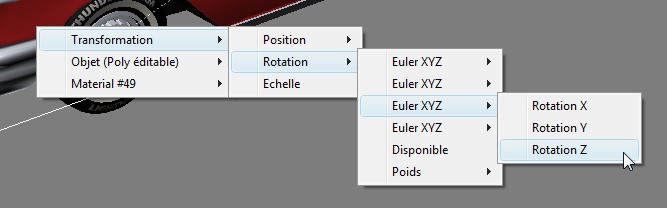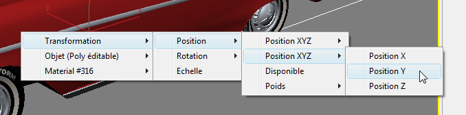 - Cliquez sur l'une des roues de la voiture et choisissez Transformation