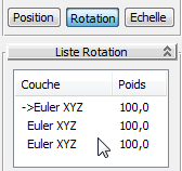 panneau déroulant Paramètres PRE, assurez-vous que le bouton Rotation est actif puis, dans le panneau déroulant Liste Rotation, vérifiez qu'un nouveau sous-contrôleur a été ajouté à la liste Rotation (il devrait y en avoir 3 en tout).