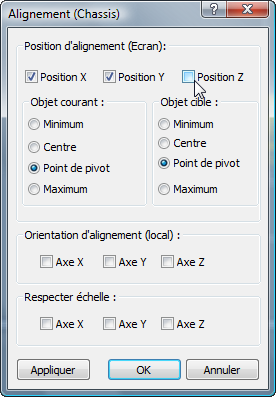 (Aligner) dans la barre d'outils principale, puis sélectionnez l'objet Châssis dans une fenêtre.
