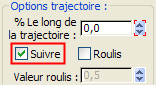 zone Options trajectoire, activez l'option Suivre.
